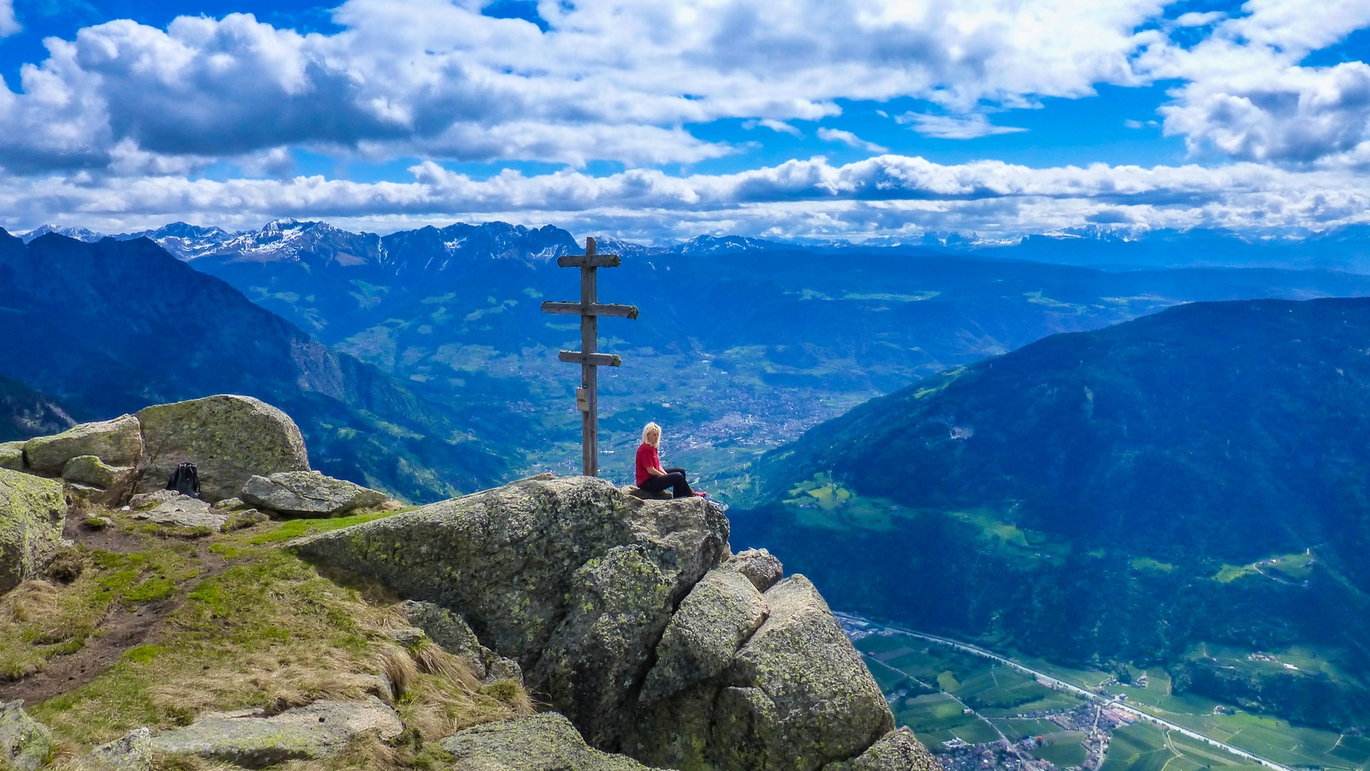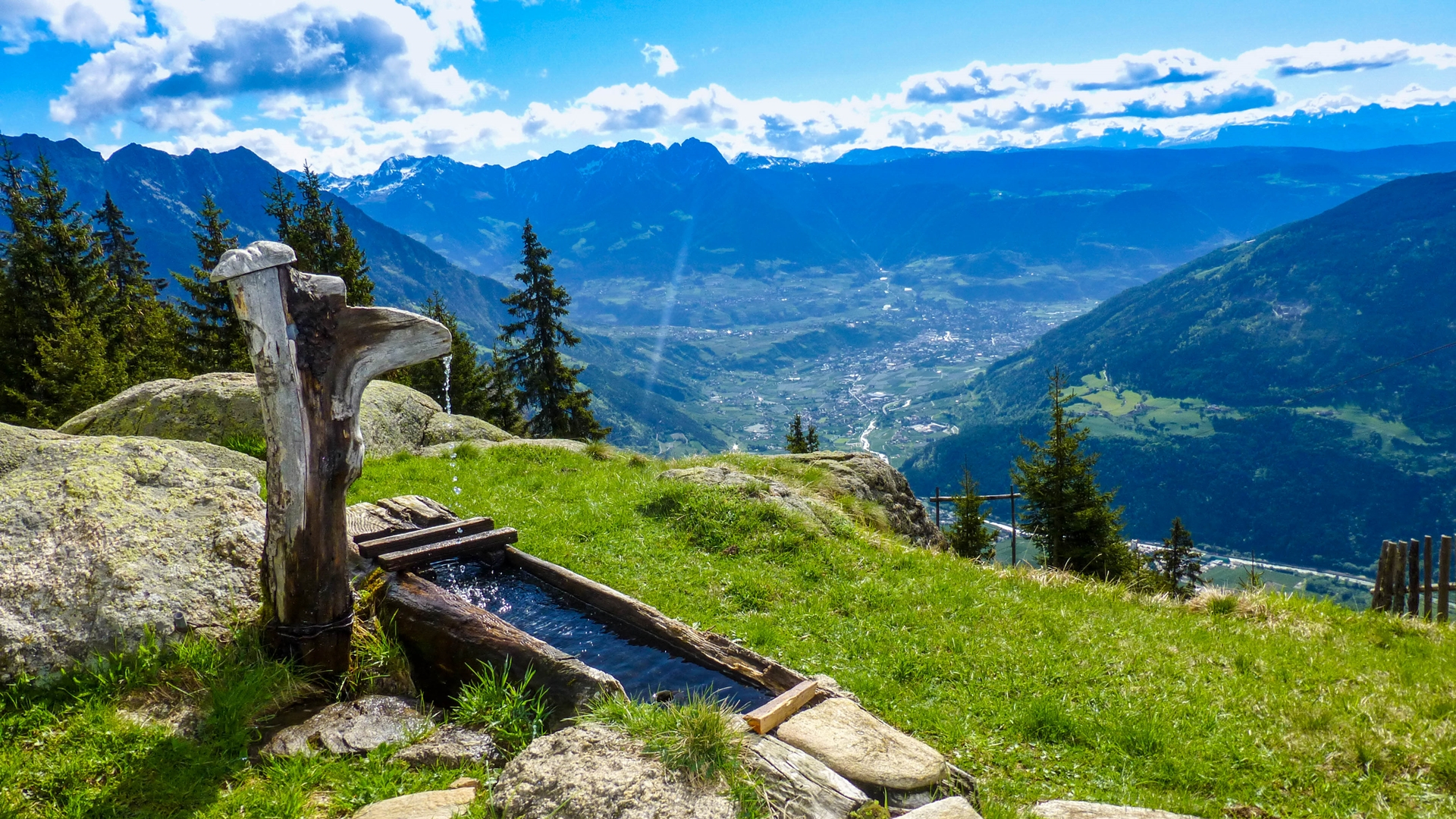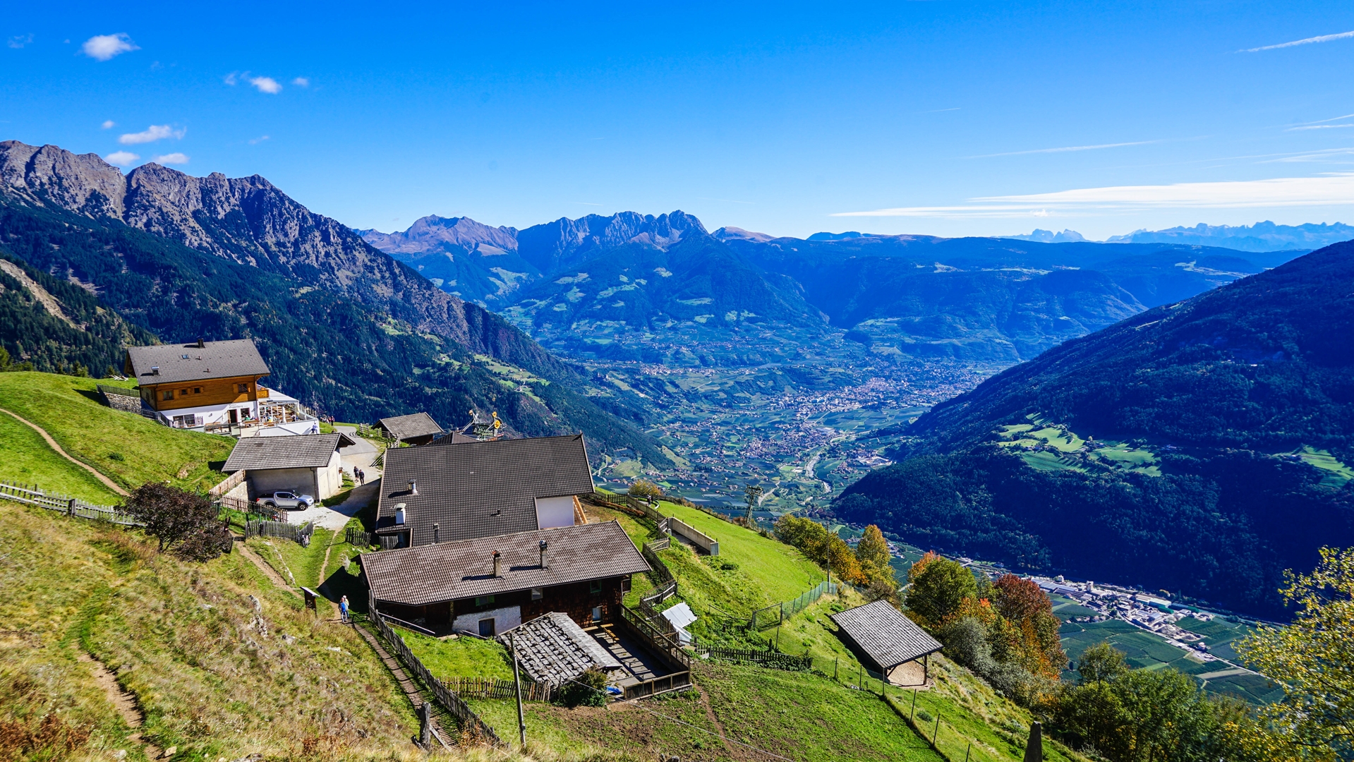 Treffpunkt ist der große Parkplatz am Sportplatz in Latsch. Von dort fahren wir gemeinsam mit eigenen Autos zur Talstation der Texelbahn oberhalb von Rabland/Partschins (ca. 20 Autominuten von Latsch). Mit der Seilbahn geht es hinauf zur Bergstation Giggelberg auf 1.544 m, wo uns bereits ein fantastischer Ausblick in den unteren Vinschgau und ins Meraner Becken erwartet. Von der Bergstation führt der Weg in mäßiger Steigung durch Lärchen- und Fichtenwald und wird zunehmend alpiner, bis wir das Gipfelkreuz auf knapp 2.300 m erreichen. Auf dieser Aussichtskanzel genießen wir ein wirklich traumhaftes Panorama, das seinesgleichen sucht. Wir blicken hoch über Meran ins Etschtal, über den gesamten Mittel- und Untervinschgau, und bei guter Fernsicht sogar bis in die Dolomiten. Nach einer Rast am Gipfel steigen wir westwärts, (manchmal auch etwas steil) ab, vorbei an alten, nicht bewirtschafteten Almen und Bauernhöfen. Über den bekannten Meraner Höhenweg kehren wir im ständigen Auf und Ab zur Bergstation der Texelbahn zurück. Dort kehren wir in einem Berggasthof ein, bevor wir mit der Texelbahn wieder ins Tal zu unserem Ausgangspunkt fahren.