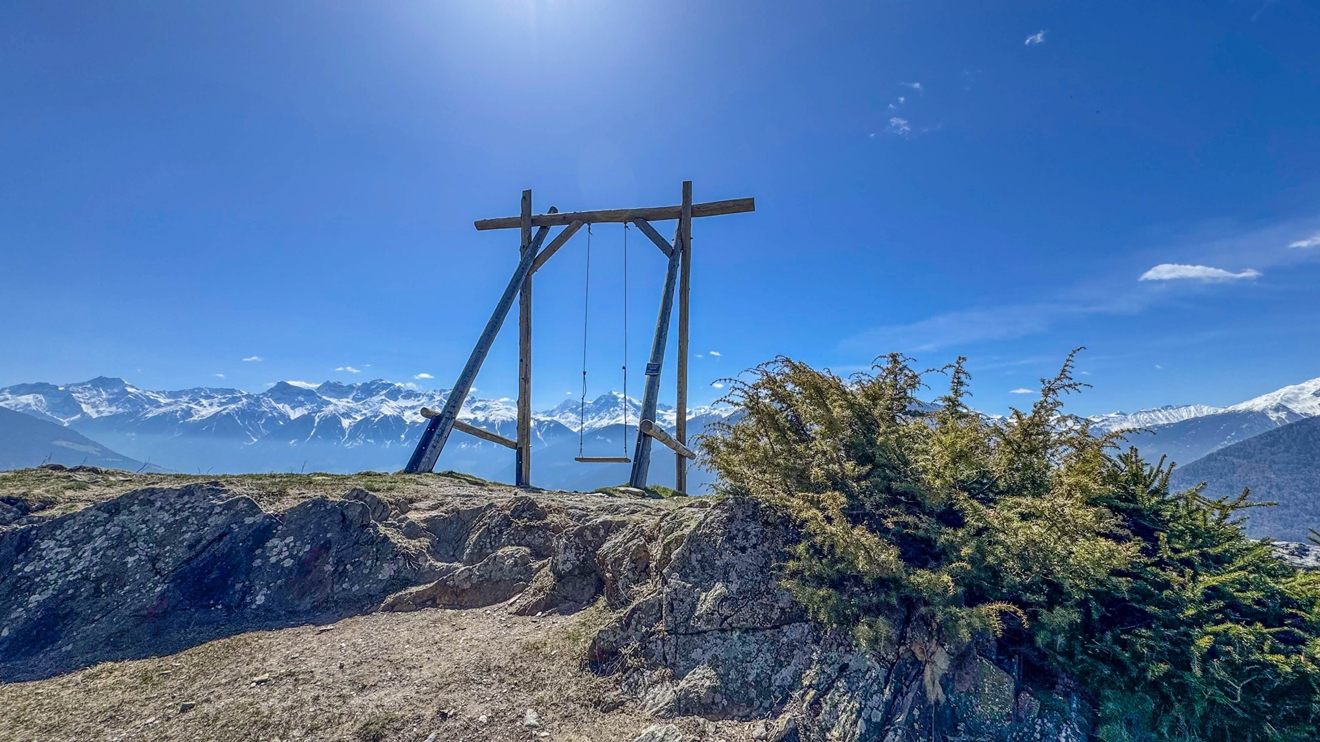 Nach einer Rast am Logenplatz wartet ein besonderes Erlebnis auf uns: die Riesenschaukel! Hier kannst du dich in die Lüfte schwingen und das Gefühl grenzenloser Freiheit genießen, während dir das ganze Tal zu Füßen liegt – ein absolutes Muss für das perfekte Urlaubsfoto.